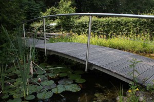 Die Aluminium-Konstruktion der Teichbrücke ist dauerhaft und stabil