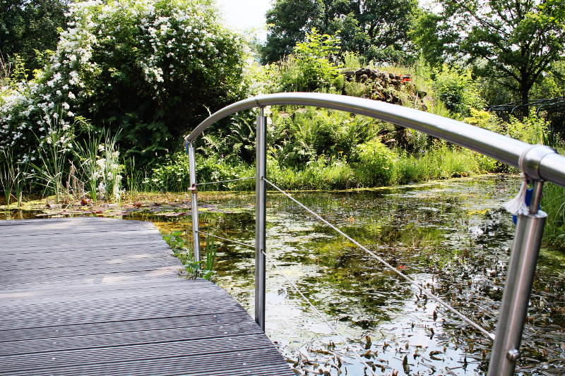 Ein Steg oder eine Brücke sind eine perfekte Ergänzug eines Gartenteiches