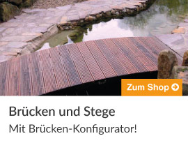 Natürlich gibt es auch ein reichhaltiges Angebot für die Gestaltung des Teichumfeldes. Auf Wunsch werden Stege und Brücken von den erfahrenen NaturaGart-Teichbauexperten sogar individuell entworfen - wer möchte, benutzt den Online-Konfigurator, um selbst eine Konstruktion zu erstellen. Die Bauteile werden entsprechend den Vorgaben maßgefertigt. Das Sortiment an Pflanzen, im wie am Teich und im umgebenden Park oder Garten, deckt alle Facetten ab. Naturnah wohnen ist gleichfalls möglich, da das Unternehmen Gewächshäuser in unterschiedlichen Formen und Ausführungen sowie eine große Auswahl an Pavillons im Programm hat.