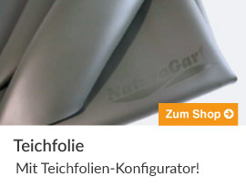 Wissen und Material für über 50.000 Teichanlagen hat NaturaGart in den über drei Jahrzehnten seines Bestehens geliefert. Dazu zählt Teichfolie für die Teichabdichtung ebenso wie die, für die Aufrechterhaltung des ökologischen Gleichgewichts im Gewässer und die Teichpflege erforderliche, Teichtechnik. Oder Filtersysteme, die unter anderem bei der Sedimentkontrolle, eingesetzt werden. Und Laubschutzsysteme, die verhindern, dass die im Herbst abgefallenen Blätter auf die Wasseroberfläche geweht werden, auf den Teichgrund sinken und vermodern.