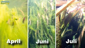 Unterwasseraufnahmen eines Garteteiches über mehrere Monate.