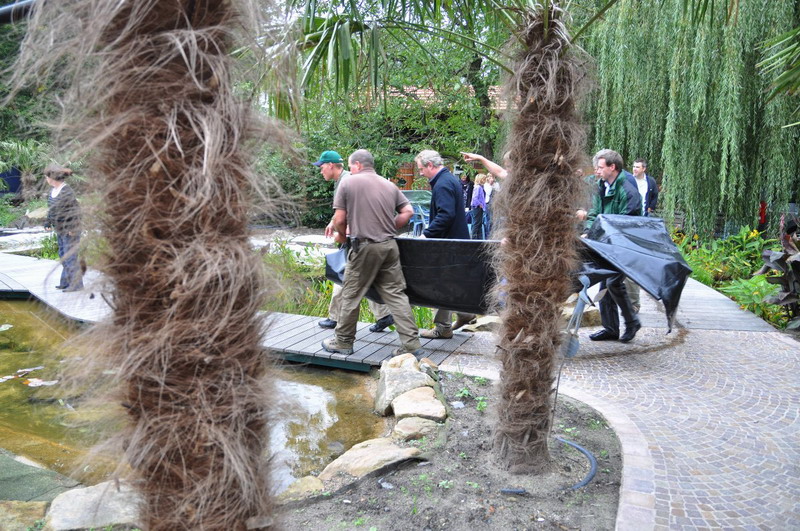 Jetzt ist er im NaturaGart Park angekommen. Der Transport im speziell ausgerüsteten Hänger mit Wasserfüllung lief problemlos.