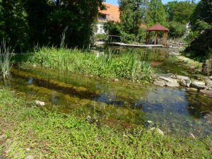 Ein Filterteich kann auch an einem Naturteich angelegt werden. Zweck: Sedimentbeseitigung.