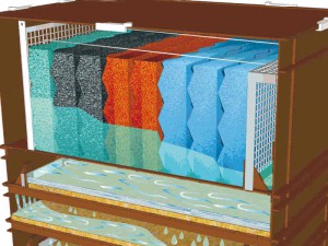 Durch korrekte Anordnung der Filterschäume im Teichfilter wird die Effektivität der Filteranlage optimiert.