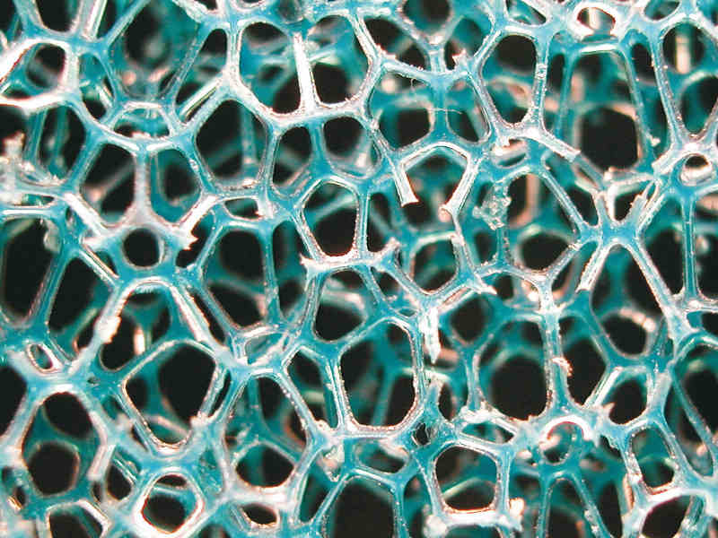Die Nahaufnahme verdeulticht die schwammartige Struktur des Filtermediums.