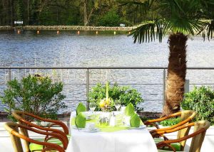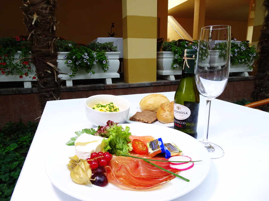 Die Gäste können sich das Frühstück ihrem Geschmack entsprechend selbst zusammenstellen. Das Angebot ist reichhaltig, abwechslungsreich und wohlschmeckend. Gäste finden Eierspeisen und Wurstwaren; zahlreiche Aufschnittvariationen können probiert werden. Es gibt ein vielfältiges Käseangebot; Joghurt und Quark; Brötchen und Croissants dazu frisches Obst und Gemüse. Bei den Getränken kann man zwischen Kaffee, Tee und verschiedenen Saftsorten wählen. Die Palette reicht vom „belegten Brötchen“ für den kleinen Hunger bis hin zum opulenten Sektfrühstück im kleinen Kreis mit Blick auf den See. Seit 2020 gibt es keine Frühstücksangebote mehr.