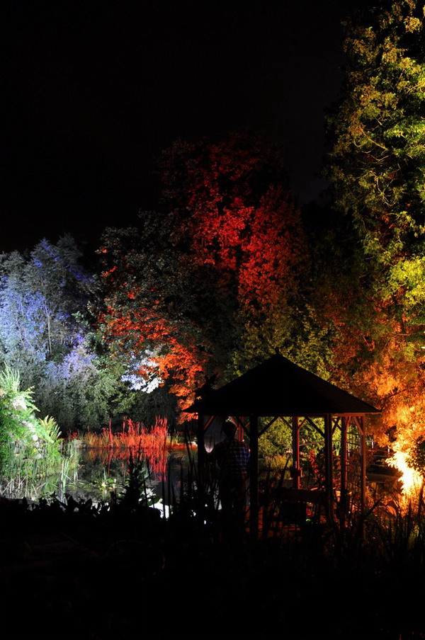 Die Büsche und Bäume leuchten dann aus sich heraus und vermitteln eine ganz andere Stimmung im abendlichen Garten.