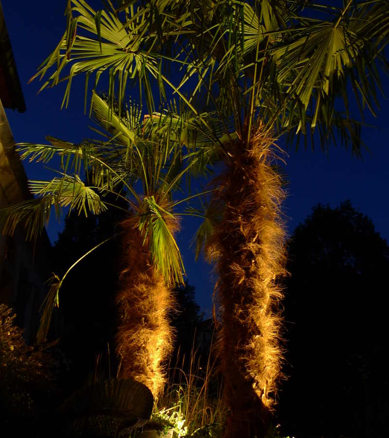 Dramatisch inszenierter Garten mit indirekt eingesetztem Licht