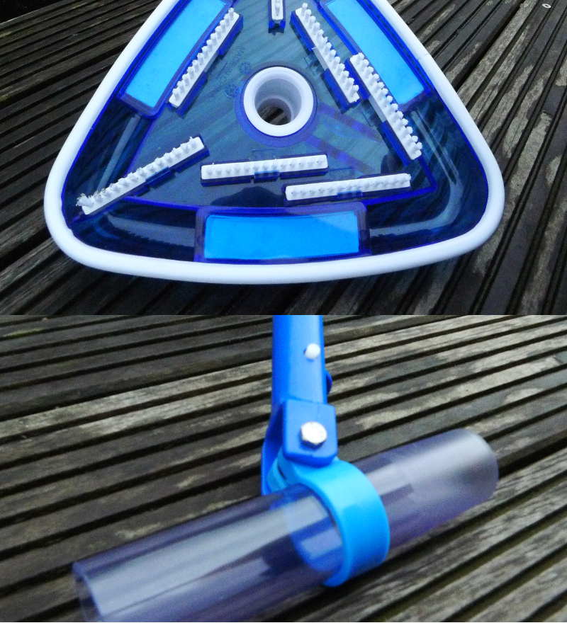 Schmutzkontrolle am Teich: Saugdüse rund und eine Dreieck-Bodendüse.