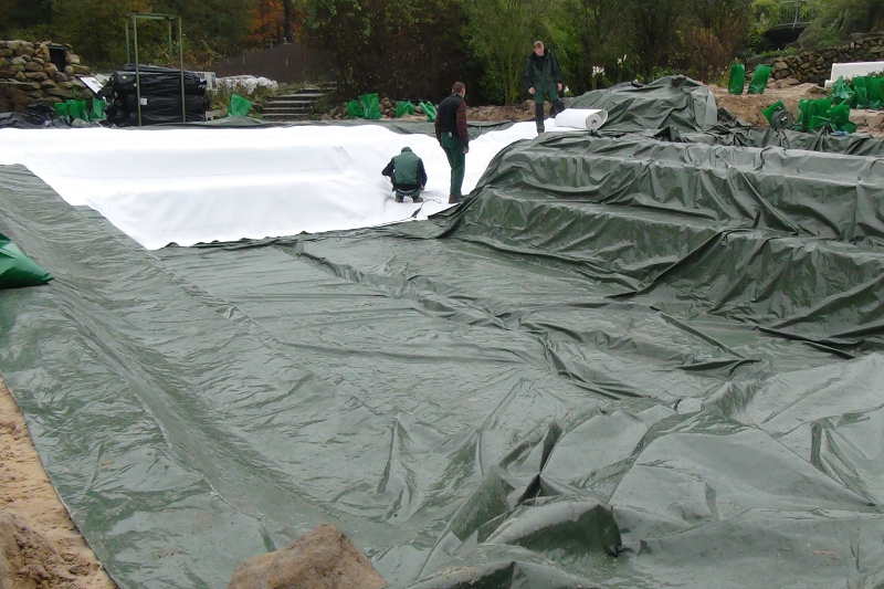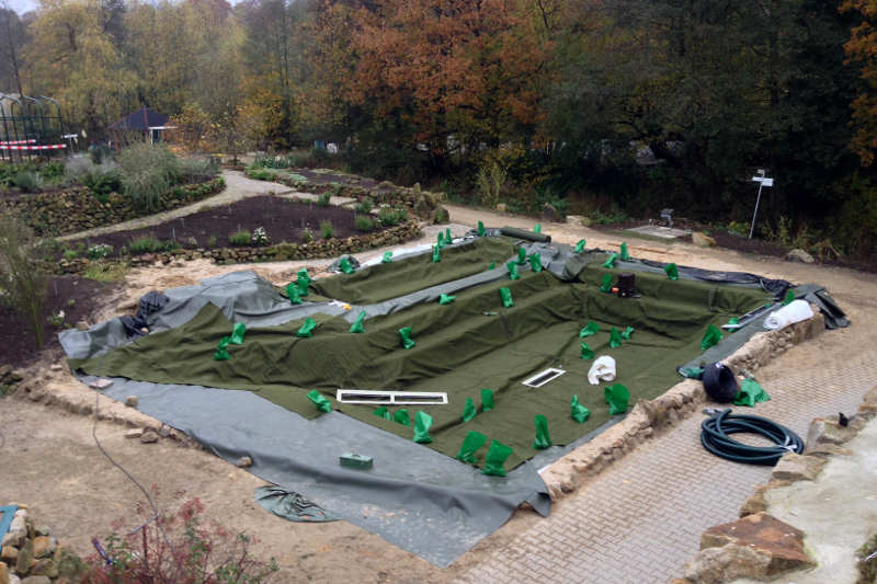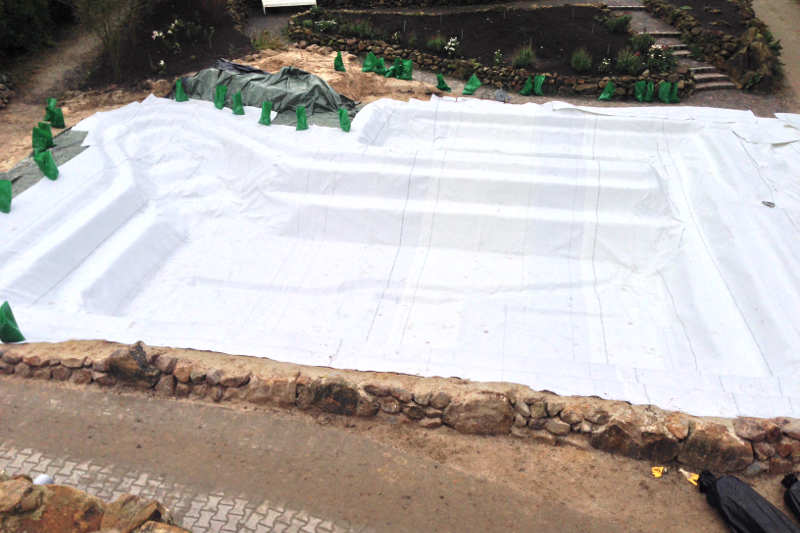 Ein Schutzvlies unter der Teichfolie schützt zusätzlich gegen mechanische Einwirkungen und verlängert die Langlebigkeit der Teichdichtung. Mit der Verlegung der Teichfolie über dem Schutzvlies endet der erste Teil der Serie.