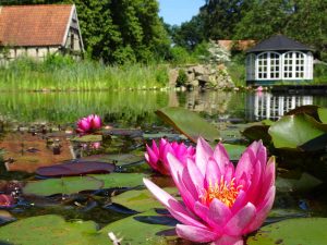 Beim Durchlaufen des Filtergrabens werden dem sedimenthaltigen Wasser die Nährstoffe entzogen. Das gereinigte Wasser wird mit Hilfe einer Pumpe, die sich am Ende des Filtergrabens befindet, in den Schwimmteich zurückbefördert. Dadurch fließt neues, sedimenthaltiges Wasser in den Filtergraben nach. Es ist wichtig, dass alle Bestandteile des Schwimmteichsystems genau aufeinander abgestimmt sind. Denn nur dann arbeiten sie kostengünstig und effektiv. So muss beispielsweise der Filtergraben der Größe und dem Nährstoffaufkommen des jeweiligen Teichs entsprechend dimensioniert werden. In Fischteichen gelangen durch den Verdauungsprozess der Fische erheblich mehr Nährstoffe ins Wasser. Deshalb werden dort vielfach ergänzende Modulfilter eingesetzt. Sie bestehen aus verschiedenen, einzelnen Modulen, die sich mit einander kombiniert lassen und zum Beispiel mit Filterschäumen bestückt werden können. Dadurch kann die Filtereinheit exakt auf die Anforderungen des jeweiligen Gartenteiches abgestimmt werden.