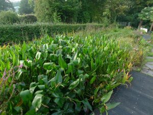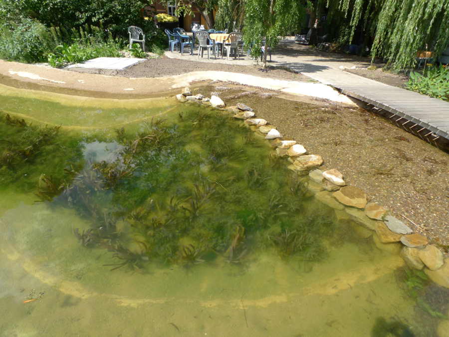 Durch den Filtergraben bleibt der Schwimmbereich frei. Die Filterpflanzen finden hier die benötigten Lebensbedingungen. Die Größe des Filtergrabens ist auf den Schwimmteich angepasst.