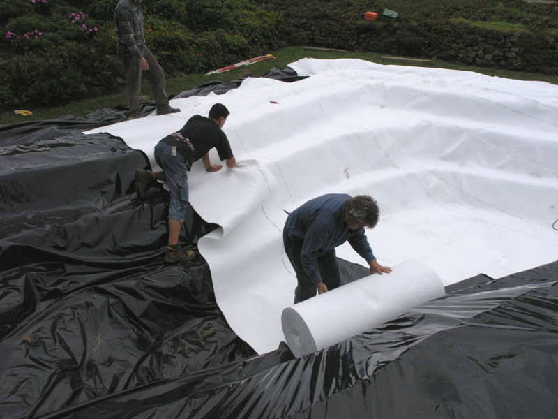 Die Schutzfolie ist ein Wall gegen Bodenmikroben, die die Teichfolie angreifen