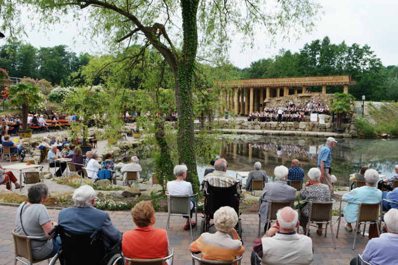 Im Juni beginnt bei Naturagart die Konzertsaison. Dann finden im Park in loser Folge zahlreiche Musikveranstaltungen statt. Bodenständig geht es am 15. Juni los. Am Nachmittag des Feiertags Fronleichnam um 15 Uhr intoniert das „Blasorchester Frohsinn“ einen zünftigen Mix aus Volksmusik und Schlagern.