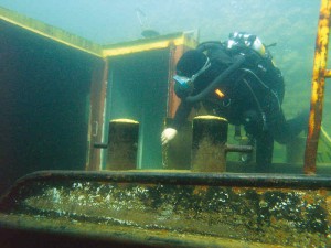 Zur Vielfalt des Taucherlebnisses gehört auch ein Schiffswrack auf dem Grund des Sees.