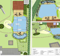 Die Grob-Planung soll in einem ersten Schritt die Interessen gegeneinander abwägen. Das Ergebnis ist ein grober Grundriß mit Teich, Sitzplätzen, Wegen etc. Am besten wird die Fläche im Gelände abgesteckt, damit man sich darunter mehr vorstellen kann.