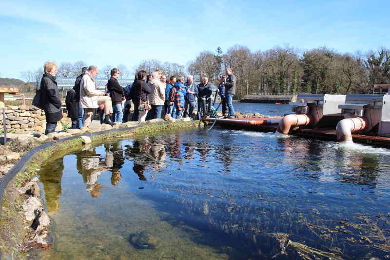 An einem Filterteich erklärt NaturaGarts Zoologischer Leiter, Dr Holger Kraus, die Funktionsweise von Trommelfiltern.