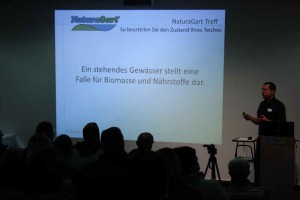 Dr Holger Kraus hält einen Vortrag beim Teichpflege-Seminar.