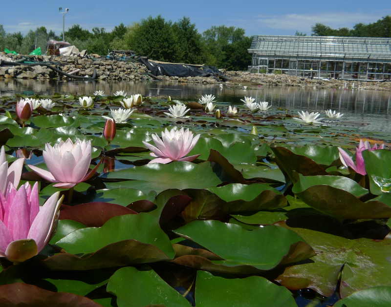 Die Seerosen-Blätter im Tauchpark werden abgeerntet, bevor sie sich zersetzen und Huminstoffe abgeben.