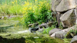 Eine Redensart lautet: Es gibt keine dummen Fragen, sondern nur dumme Antworten. Natürlich: Algen sind lästig und können die Optik des Teiches stören. Sie können aber auch hilfreiche Geister sein. Welchen Zweck erfüllen also Algen im Gartenteich? Algen sehen nicht immer schön aus. Sie zeigen aber an, dass es im Gartenteich überschüssige Nährstoffe gibt. Das kann besorgniserregend sein. Muss es aber nicht. Denn ein Gartenteich präsentiert sich zu jeder Jahreszeit in einem anderen Gewand.