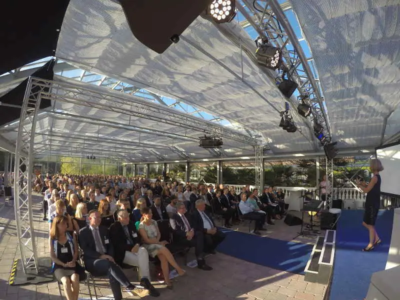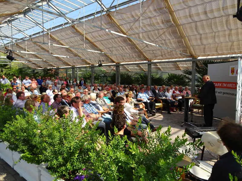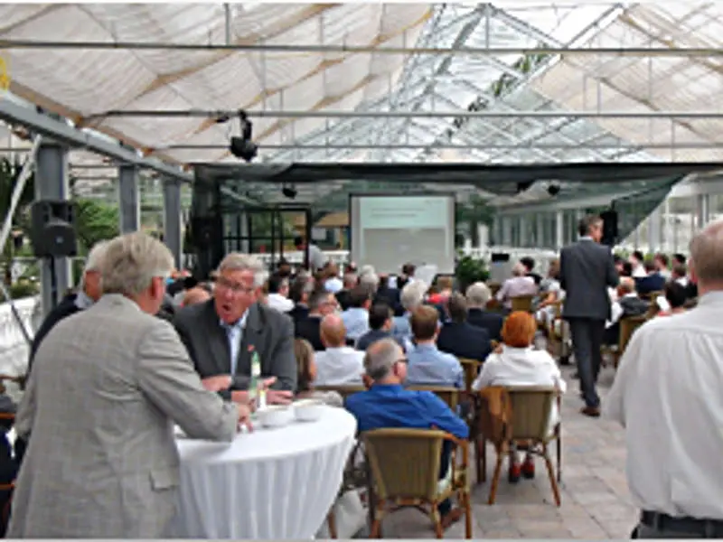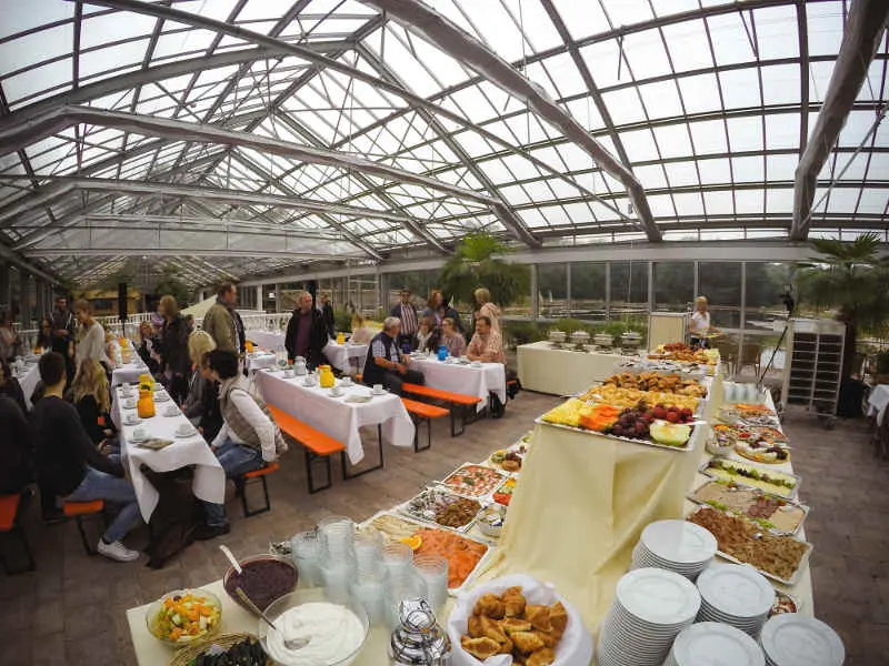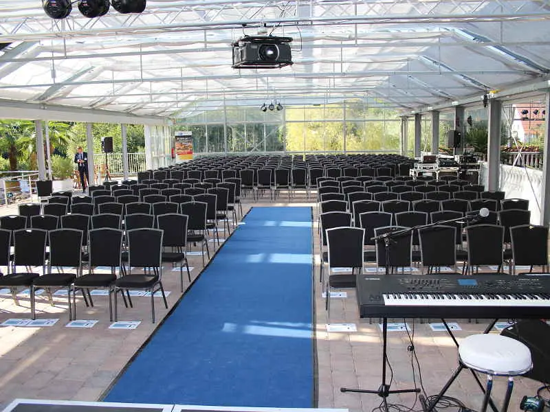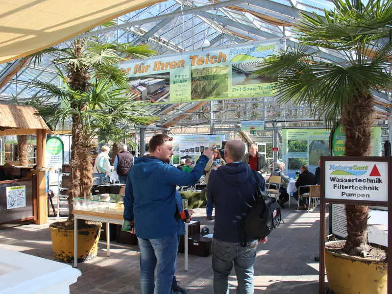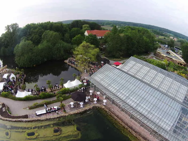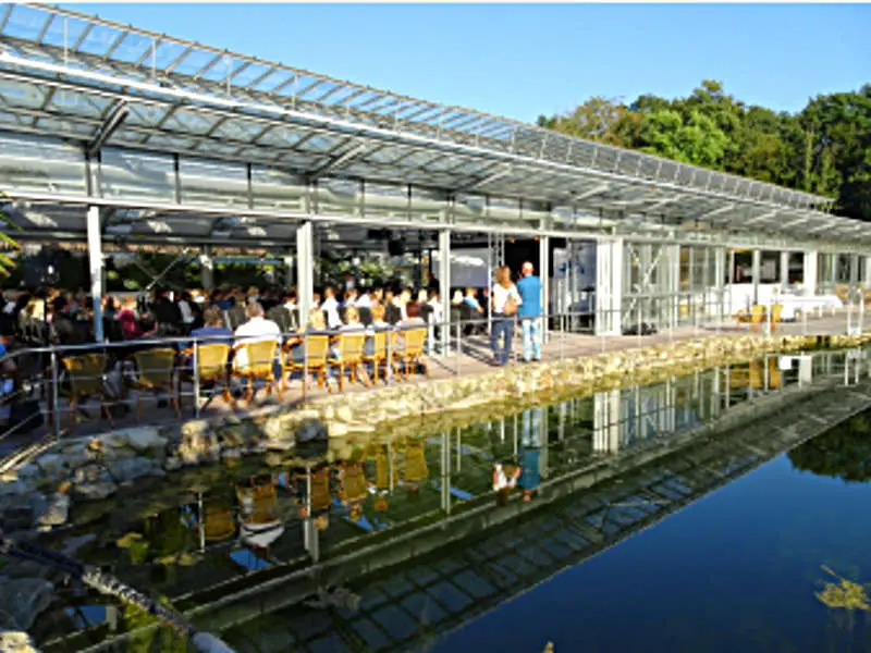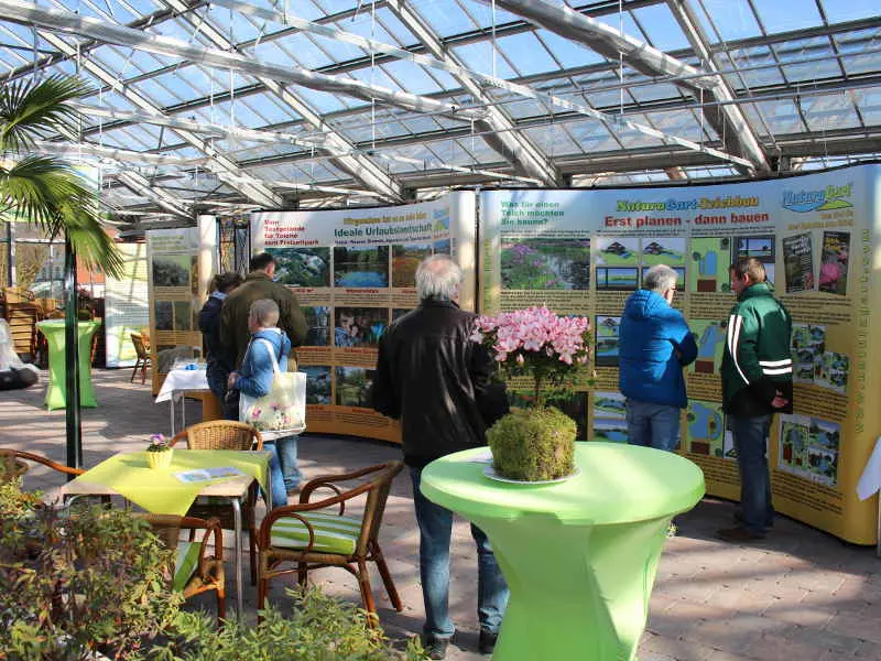 Die Seeterrasse bietet viel Platz für Messestände, Stehtische, Sitzgruppen etc. Eine ideale Firmen-Präsentation. Hier gibt es ein Video über die jährliche → NaturaGart-Messe.