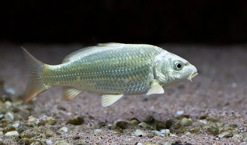 Eine sehr formenreiche Fischgruppe: Im Aquarium gibt es Mormorkarpfen, die Plankton fressen, darüber hinaus auch Silber-, Spiegel- und Graskarpfen.