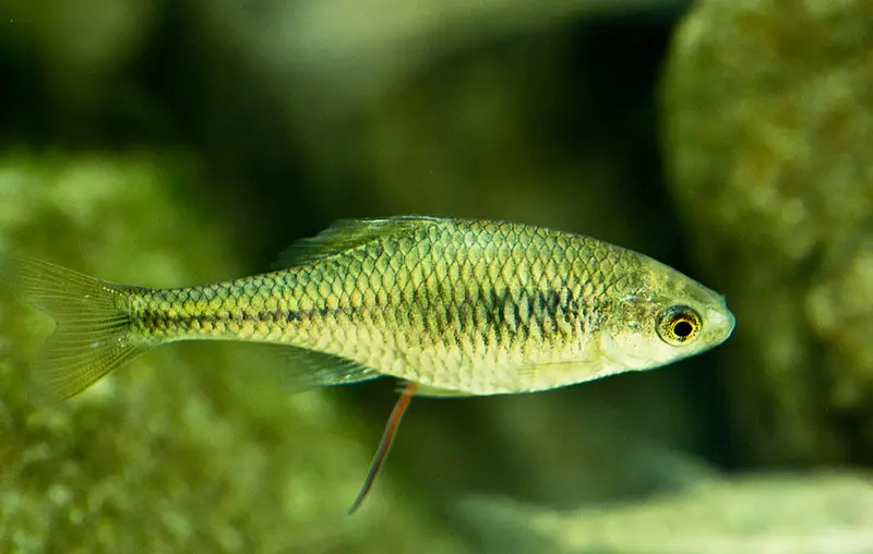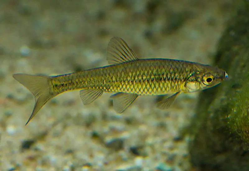 Das Bitterlingsweibchen legt ihre Eier in Süßwassermuscheln ab, wo sich die Eier und Jungfische gut geschützt entwickeln können. Diese Lebensgemeinschaft ist in einem der Becken im NaturaGart-Kaltwasseraquarium zu sehen.