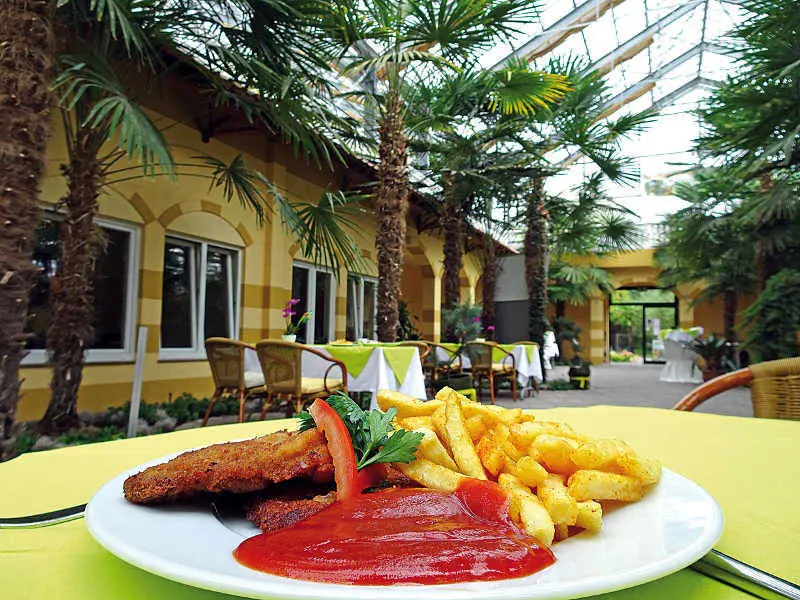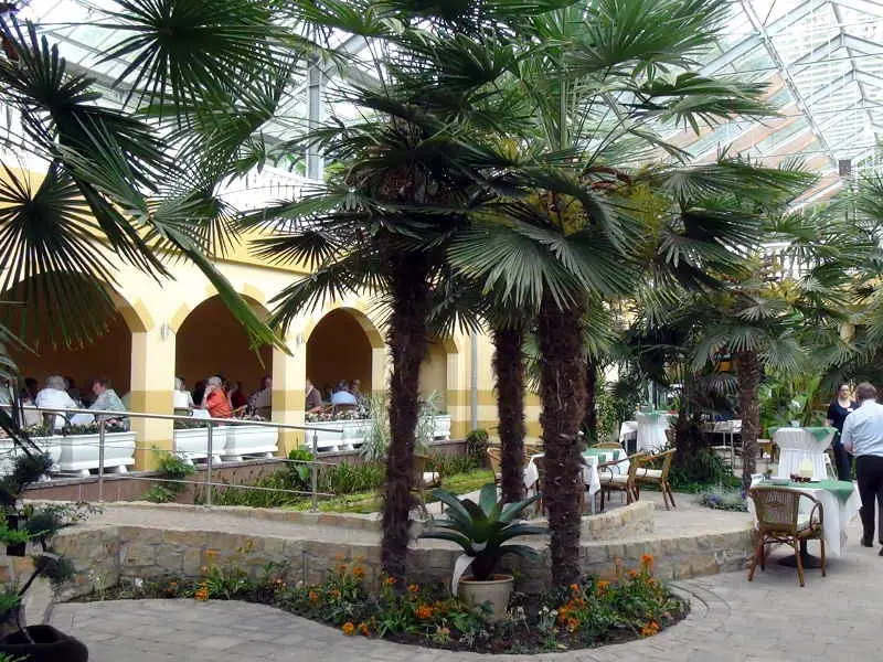 Beeindruckender Platz zum Essen: die Palmenhalle und die Arkaden
