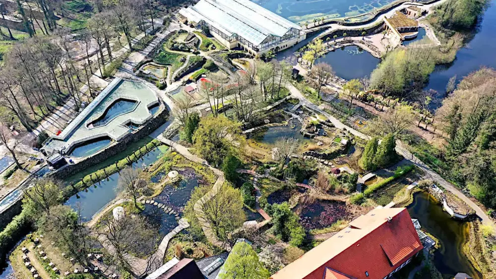 Aus dem Maisacker in der direkten Umgebung wurde über die Jahre der NaturaGart Park. Einer der ältesten Teile ist die künstlich angelegte Wasserwildnis im Südwesten des Firmengeländes. Hier haben zahlreiche Wasservögel ein Zuhause gefunden. Es folgten die Großprojekte Unterwasserpark, Tempel-Aquarium, Palmenhalle und schließlich das NaturaGart-Aquarium. Und während all dieser Zeit half NaturaGart mit seinen Ratschlägen bei der Errichtung von über 70.000 Gartenteichen in Europa.