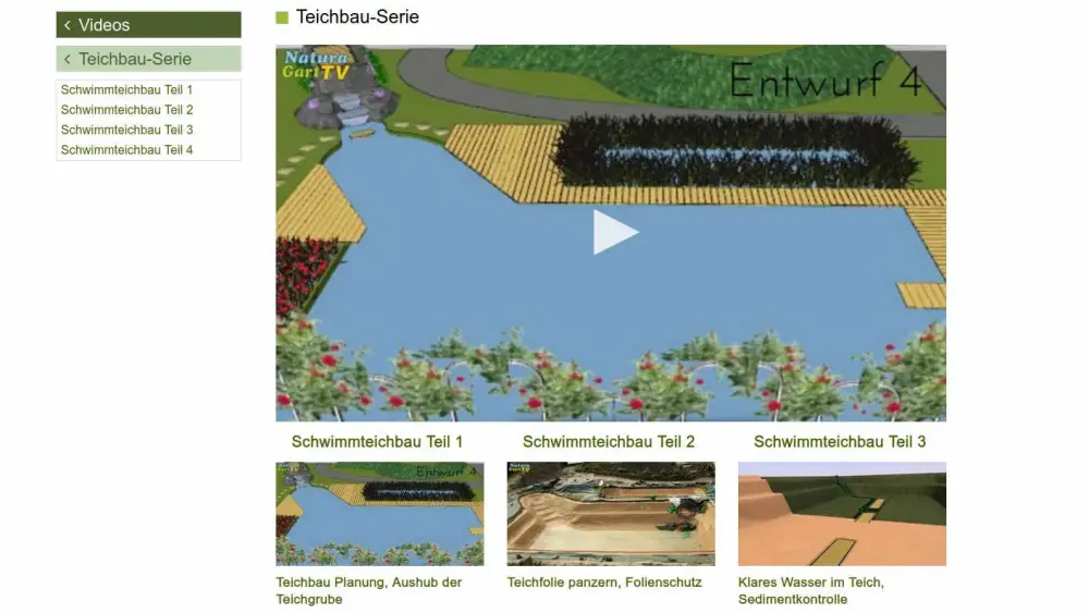 Die Internet-Seite von NaturaGart ist so viel mehr als ein Shop. Sie ist ein reichhaltiges Informationsportal: Immer wieder wird hier jahrzehntelange Teichbau-Erfahrung in leicht verständlichen Videos gebündelt, die für Sie immer verfügbar sind. Mit einer Registrierung eines Kundenkontos auf der Webseite stehen Ihnen zudem einige kostenfreie Dienstleistungen zur Verfügung, die Sie für Ihren Gartenteich nutzen können.