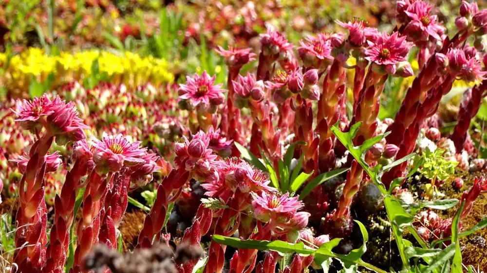 An der Oberfläche wirken Dachstauden oft zierlich, aber ihre Wurzeln kämpfen intensiv um Wasser - vor allem in trockenen Phasen.