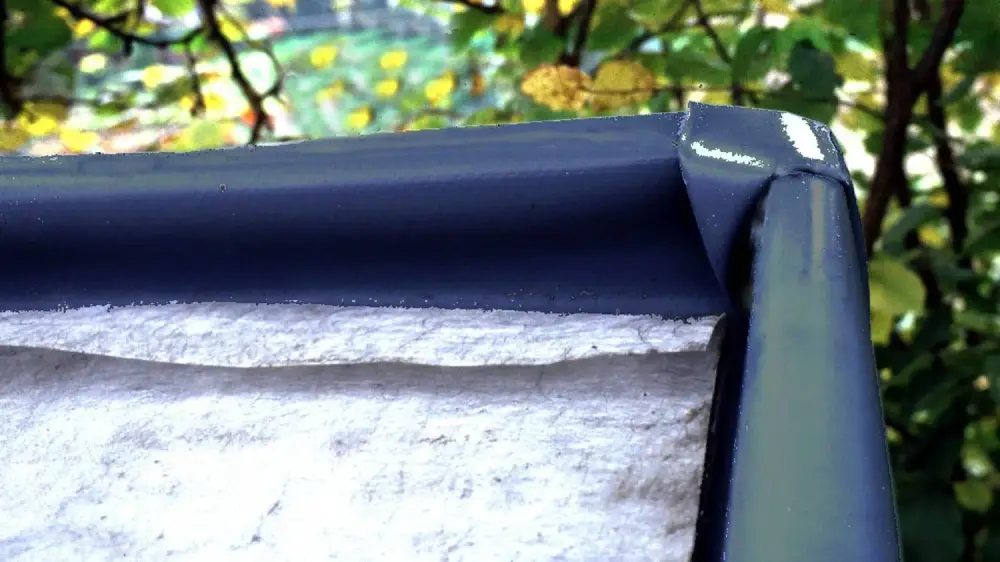 Die Dachdecker werden auch in einer solchen Ecke die Folie aufschneiden und ein dreidimensionales Eckelement einkleben. Wenn man jedoch berücksichtigt, dass solche Klebestellen das höchste Durchwurzelungs-Risiko haben, kann man fast immer einfacher eine Falte legen. In einer solchen Ecke bildet sich ein 45°-Winkel, der in die Fläche ragt und den man an eine Wand legen oder auf zwei Wände verteilen kann.
