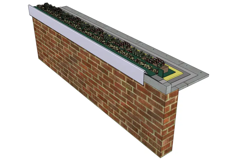 Mit diesem zweiteiligen Profil kann man eine Dachbegrünung ohne zusätzlichen Randbalken bauen und hat einen wartungsfreien Randanschluss.
