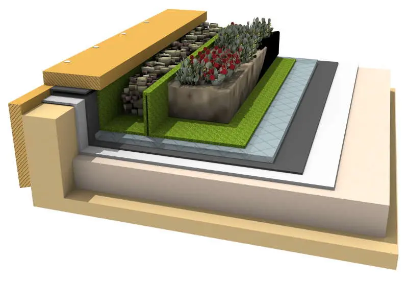 PE-Wurzelabwehrbahn in 0,5 mm als zusätzliche Schutzschicht über der Dach-Abdichtungsfolie gegen Wurzeldurchwuchs.