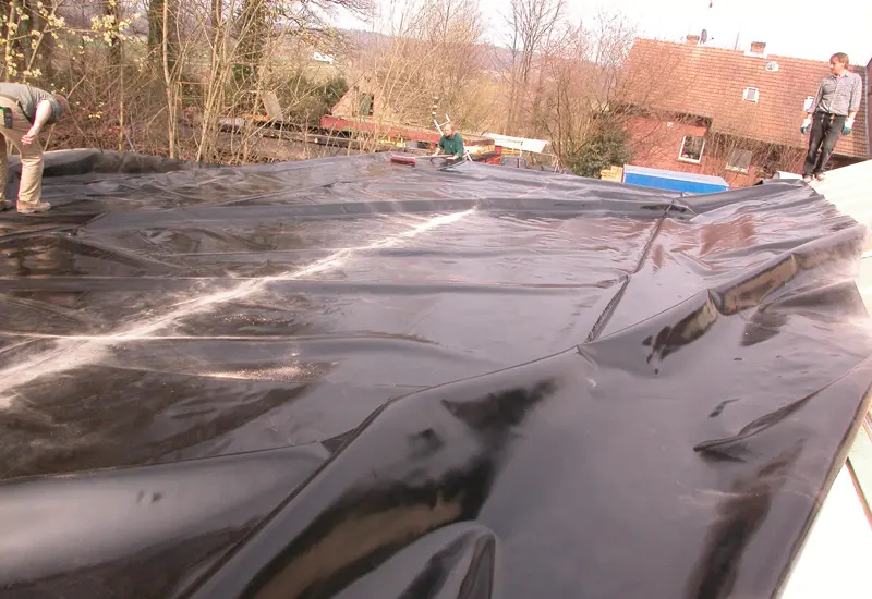 Dachfolie aus EPDM-Kautchuk ist geeignet für besonders hohe Belastungen oder hohen Sicherheitsbedarf, Grund-Dichtung und Wurzelschutz. Wir empfehlen zusätzlich dazu noch eine Wurzelabwehrbahn aus PE. Alternativ kann man auch unsere PVC-Teichfolien verwenden. Hier ist zu beachten, dass diese eine sichtbare Schweißnaht haben.