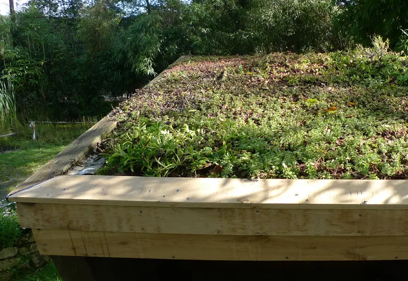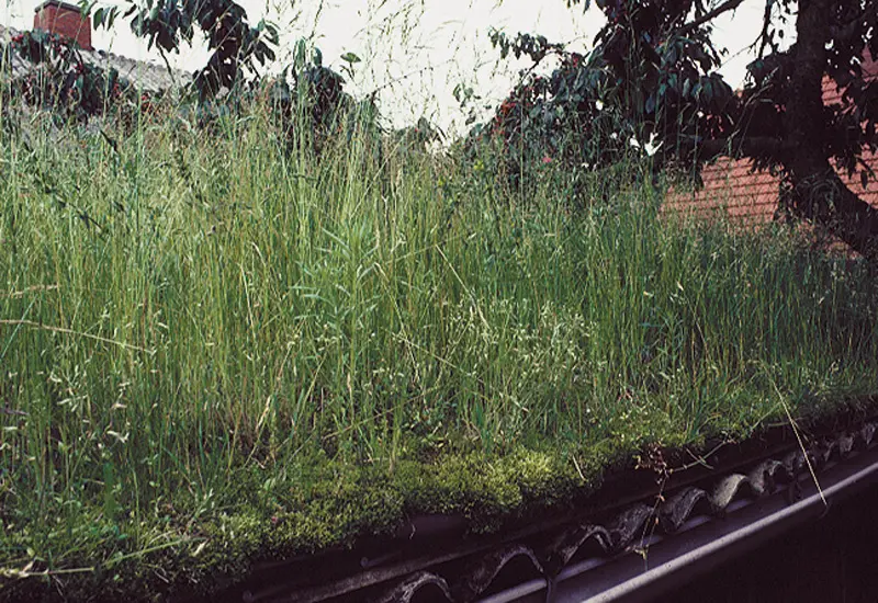 Dachbegrünung mit Entwässerung nach außen.