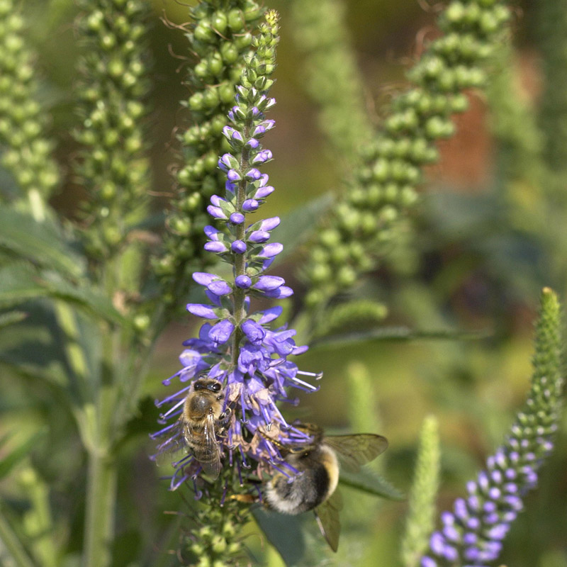 Der Blauweiderich (Pseudolysimachion longifolium, früher bekannt als Veronica longifolia) ist eine anmutige Staude, die mit ihren leuchtend blauen Blütenkerzen jedem Garten eine besondere Note verleiht.