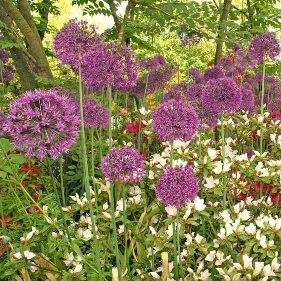 Mit seinen imposanten, kugelförmigen Blüten sorgt dieser Zierlauch für spektakuläre Akzente im Garten. Die außergewöhnliche Wuchshöhe und die leuchtenden Blütenbälle machen ihn zu einer beliebten Wahl für Beete, Rabatten und naturnahe Pflanzungen.
