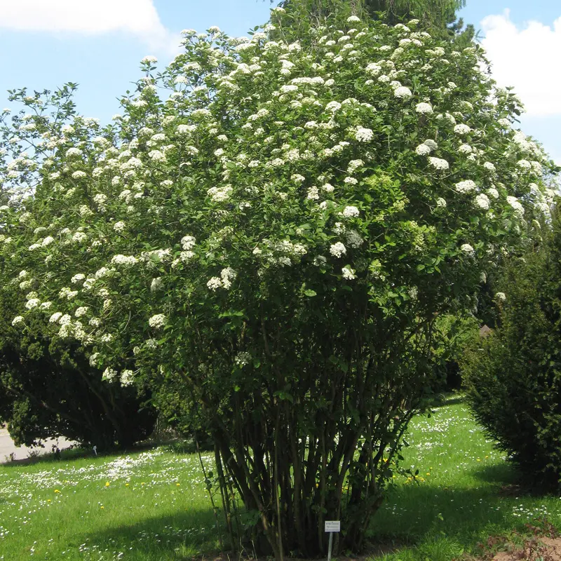 - Schneeball, Gewöhnlicher: Der Gewöhnliche Schneeball, bekannt für seine auffälligen, ballförmigen Blüten, ist eine Zierde für jeden Garten. Er zieht Schmetterlinge und andere Insekten an und bietet im Winter Nahrung für Vögel. Seine robuste Natur macht ihn zu einer pflegeleichten und langlebigen Wahl für Gartenlandschaften.