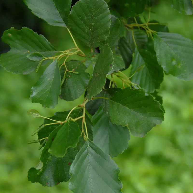 - Schwarz-Erle: Die Schwarz-Erle ist ein robuster Baum, der besonders gut an feuchten Standorten und entlang von Gewässern gedeiht. Mit ihren charakteristischen dunklen Rinden und gezackten Blättern bietet sie ganzjährig ein interessantes Erscheinungsbild. Diese Baumart ist ideal für die Schaffung natürlicher Sichtschutzwände und trägt zudem zur Verbesserung der Bodenqualität bei, da sie Stickstoff im Boden binden kann.