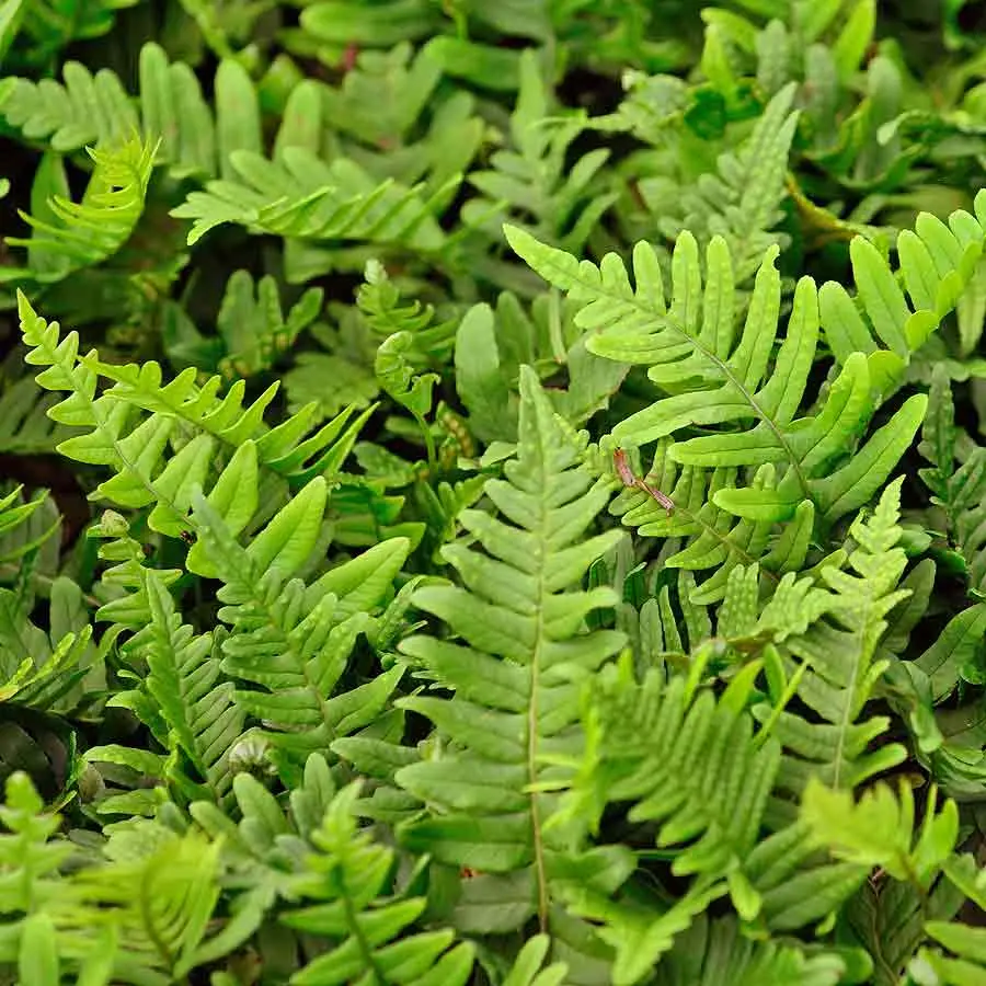 - Tüpfelfarn: Der Tüpfelfarn ist eine elegante Wahl für schattige Bereiche und bringt mit seinen zart gefiederten Wedeln Struktur und Grün in den Garten. Dieser Farn eignet sich hervorragend als Unterbepflanzung von Hecken und bietet ganzjährig ein attraktives, pflegeleichtes Grün.