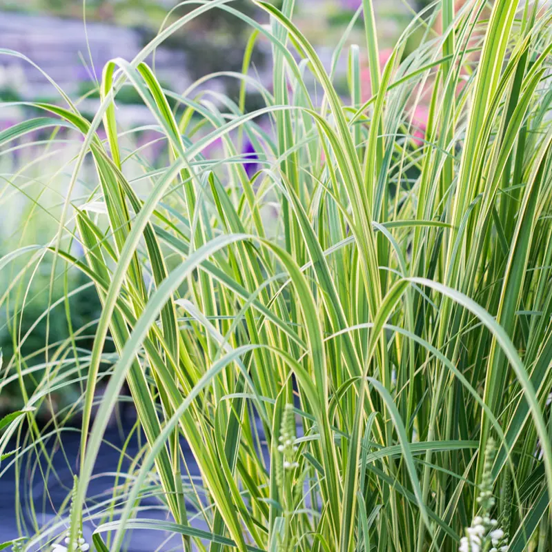 Zebra-Chinaschilf (Miscanthus sinensis 'Zebrinus') Mit seinen charakteristischen horizontalen Streifen ist dieses Gras ein echter Blickfang. Es bringt Dynamik und ein exotisches Flair in den Garten.