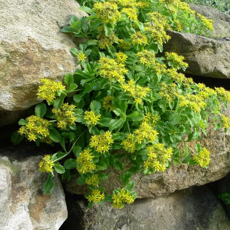 Felsen-Fetthenne: Diese robuste Sukkulente mit fleischigen Blättern und leuchtenden Blüten eignet sich besonders für Uferbereiche, da sie in der Lage ist, Böden zu stabilisieren und Erosion zu vermindern. Ihr dichtes Wachstum bildet einen natürlichen Schutz gegen zu schnelle Verdunstung, ideal für das sonnige Bachumfeld.