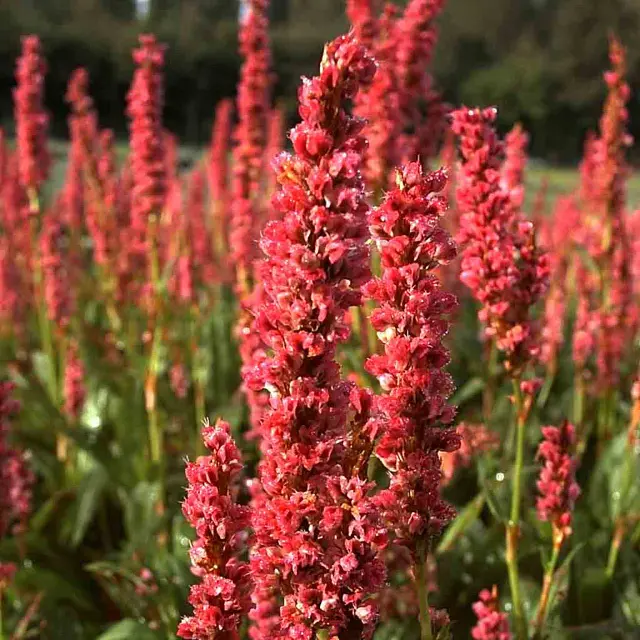Herbst-Fetthenne: Diese Fetthenne, auch als *Sedum* bekannt, blüht im Herbst und bringt so Farbe in die späteren Jahreszeiten des Bachumfelds. Ihre fleischigen Blätter speichern Wasser, was sie trockenheitsresistent macht. Dies, zusammen mit ihrer Fähigkeit, dichte Matten zu bilden, macht sie ideal zur Verhinderung von Erosion in Uferbereichen.