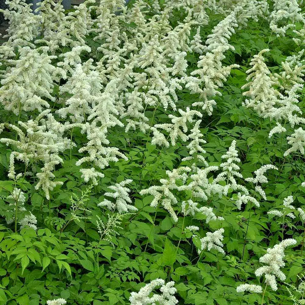 • Prachtspiere, weiß: Die weiße Prachtspiere, mit ihren zarten, weißen Blütenrispen, bringt einen Hauch von Eleganz in jeden Garten. Besonders im Halbschatten gedeiht sie prächtig und schafft durch ihre luftigen Blütenstände eine leichte, romantische Atmosphäre. Diese Pflanze zieht Bienen und Schmetterlinge an und trägt so zur Biodiversität des Gartens bei.