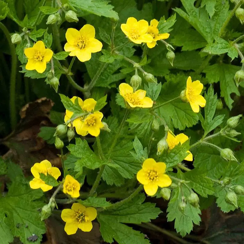 - Golderdbeere: Eine robuste, immergrüne Bodendeckerpflanze, die im Frühling mit ihren goldgelben Blüten leuchtet. Ideal für schattige Bereiche, bildet sie einen dichten, pflegeleichten Teppich und ist ein perfekter Ersatz für Rasenflächen.