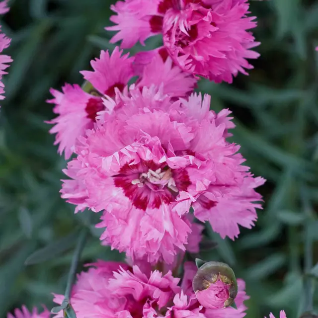 Heide-Nelke, rot: Diese aus Europa stammende Pflanze wächst in kompakten Büscheln aus schmalen, grünen Blättern. Im Sommer blüht sie mit leuchtend roten Blüten, die einen warmen, lebendigen Akzent setzen und Schmetterlinge anziehen.