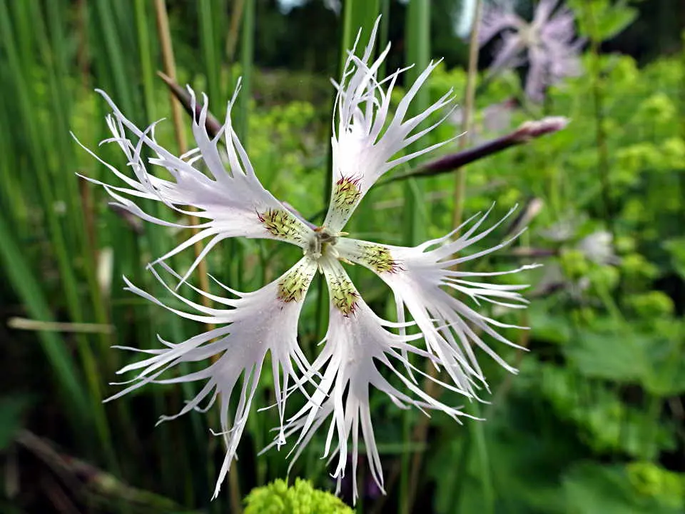 Position am Teich: Uferwall, nährstoffarm. Die Pflanzen sind spezialisiert auf feuchten Boden, wenige Zentimeter über dem Wasser. Das Teichpflanzen-Sortiment enthält u.a. verschiedene Feuchtgebiets-Nelken, Pfennigkraut und Rosen-Primeln. Die Pflanzen werden nur 10-30 cm hoch und der Blick auf den Teich bleibt frei.