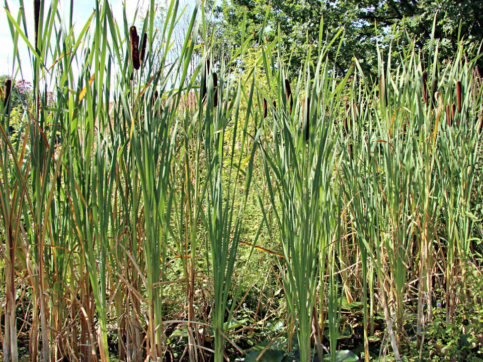 Position am Teich: Wasserrand. Die Teichpflanzen vertragen die nährstoffarmen Bedingungen, werden dann aber nicht so hoch. Ideal für die Strukturierung des Teiches im Hintergrund. Enthalten sind u.a. verschiedene Rohrkolben, Schilf und Wasserschwaden.