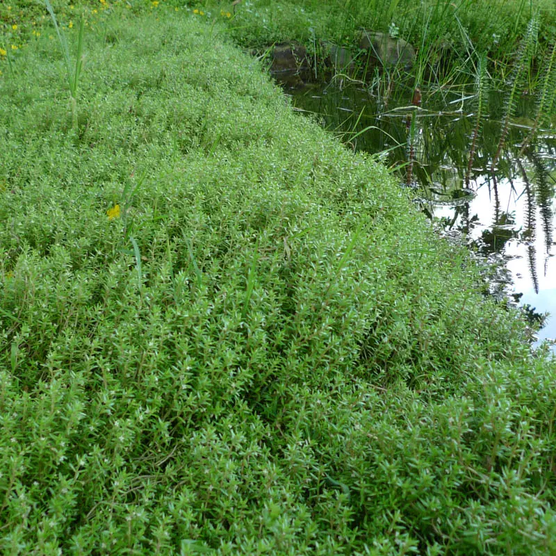 Das Wasser-Dickblatt, biologisch Crassula recurva, besticht durch seine fleischigen, saftigen Blätter, die einen interessanten Kontrast zu den üblichen Teichpflanzen bieten. Es eignet sich hervorragend für die Gestaltung von Feuchtgebieten und trägt zur Sauerstoffanreicherung und Reinigung des Teichwassers bei.